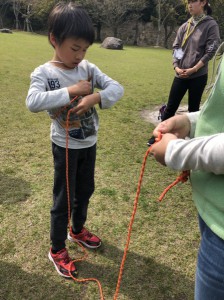 今宿野外活動センターにて火起こしやロープワークなど、今年1年間の活動のために