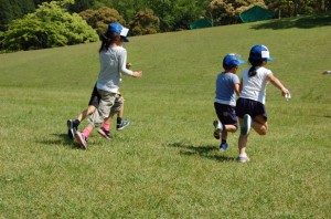 そして、後半は、楽しくレクリエーションタイム!!緑の広場をみんなで走りまわりました。