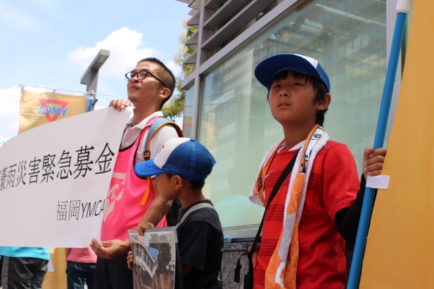でも、その前に先日の九州北部豪雨災害の被災地を想い天神と博多駅で募金活動を行いました。